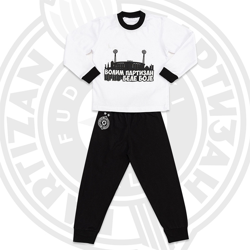 Dečija pidžama Partizan od 100% pamuka sa svetlećim elementima. Udobna, meka i navijačka – za snove u crno-belim bojama!