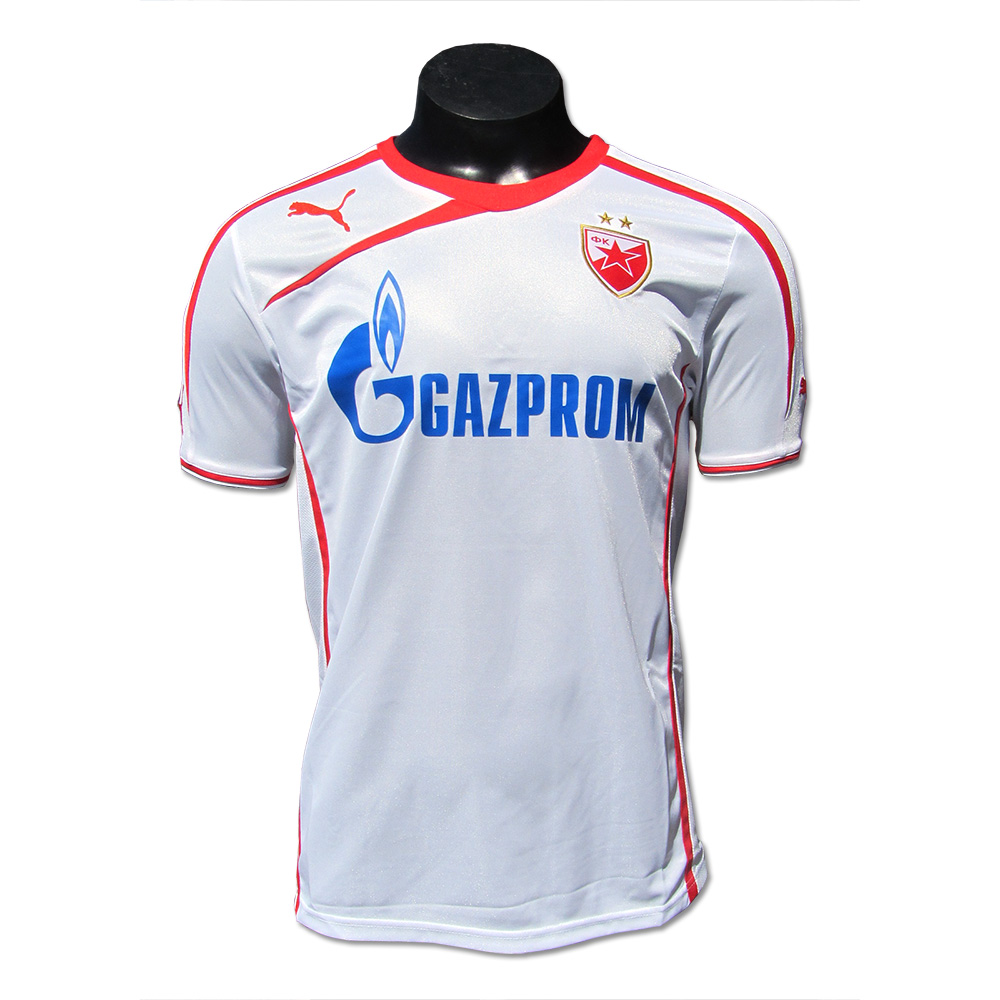 New Puma Red Star jersey, in which players will compete in the season 2013/14. Jersey has a printed logo of Gazprom, embroidered emblem of Puma company and club emblem is a combination of embroidery-jacquard.