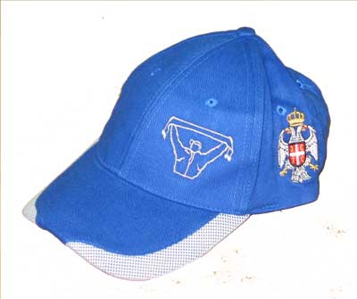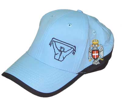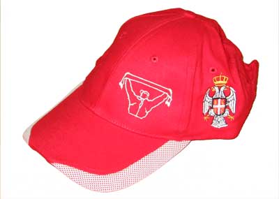 Serbian supporters's cap with Serbian Royal emblem on one side, and inscription SERBIA (in cyrillic) or small Serbian flag on the other side