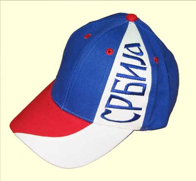 Cap in the colours of Serbian flag, with cyrillic inscription SERBIA