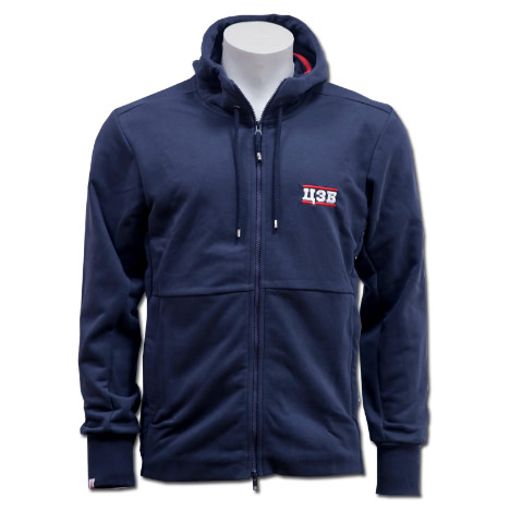 Hoodie with large print on the chect. Detail at the end of the sleeve.