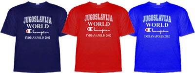 Official t-shirt of Yugoslav team on the World Cup 2002 held in Indianapolis - celebrating World Basketball Champions 2002 - YUGOSLAVIA