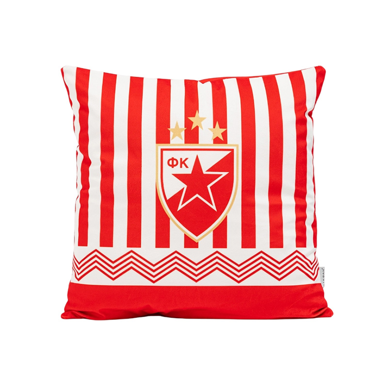 Jastučić Crvena Zvezda 45x45 – prugasti dizajn, mekan pliš i periva navlaka. Savršen izbor za navijače koji vole stil i udobnost!